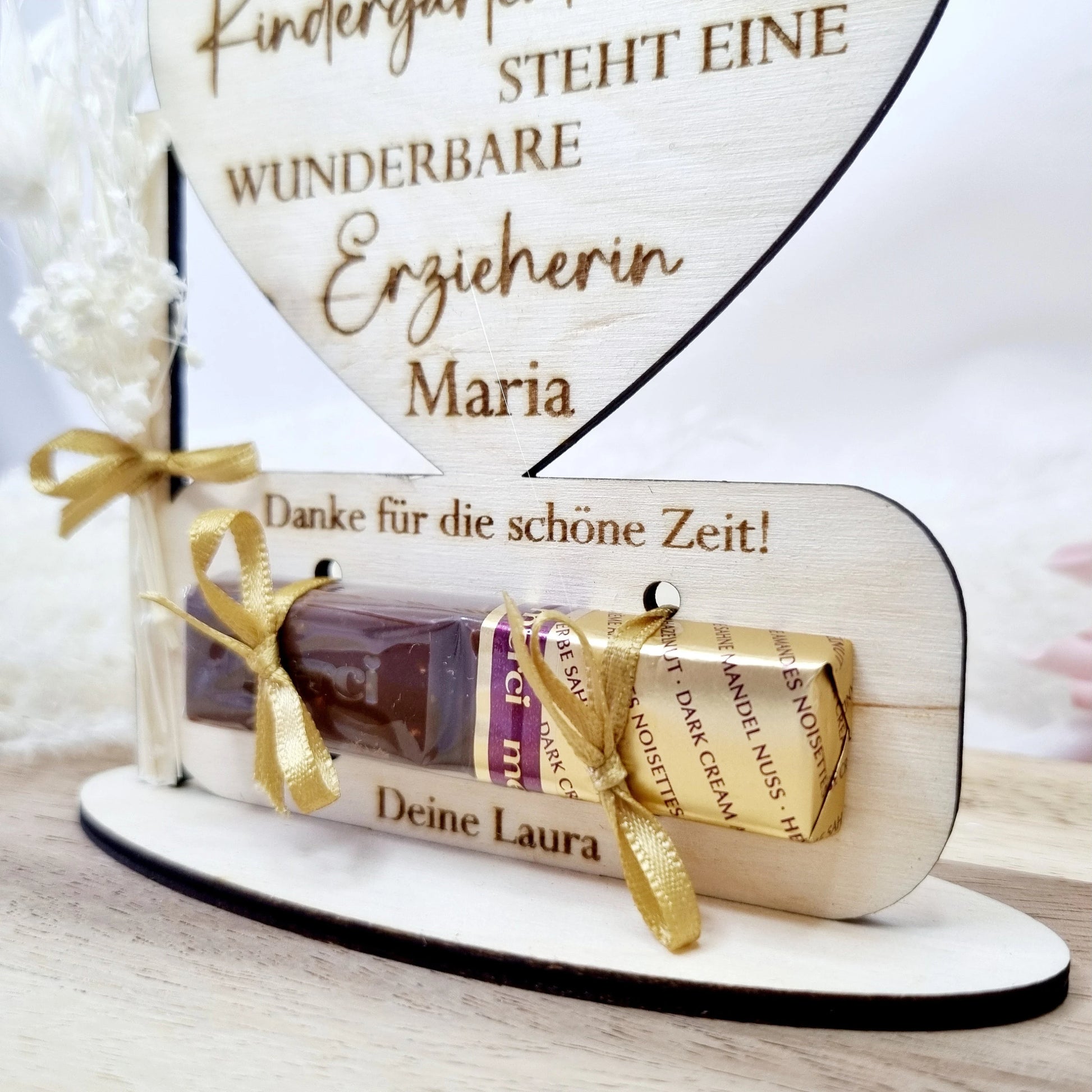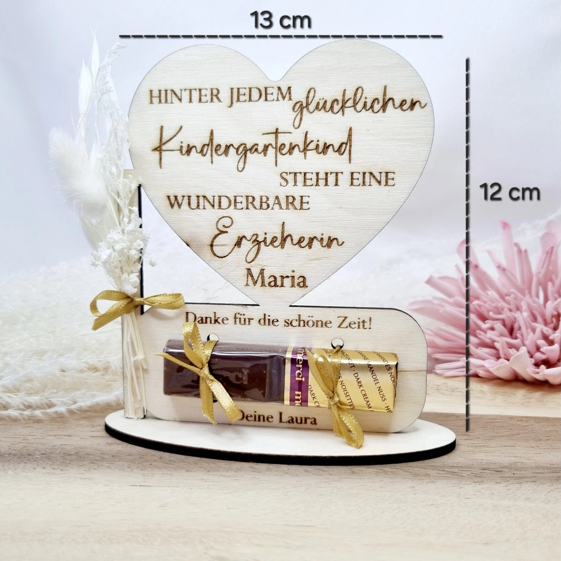 Abschiedsgeschenk | Erzieher/in | Lehrer/in | Kindergarten | Schokolade | Trockenblume | Holz | Personalisiert | Kindergartenkind