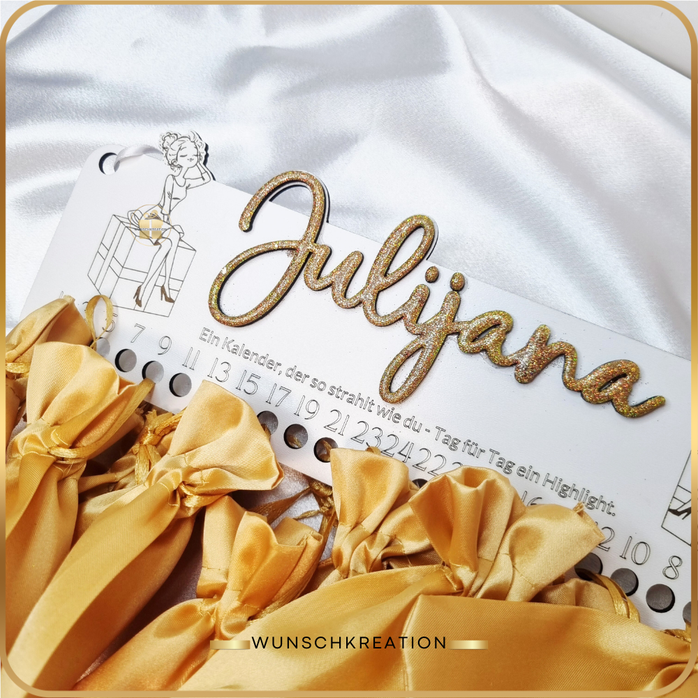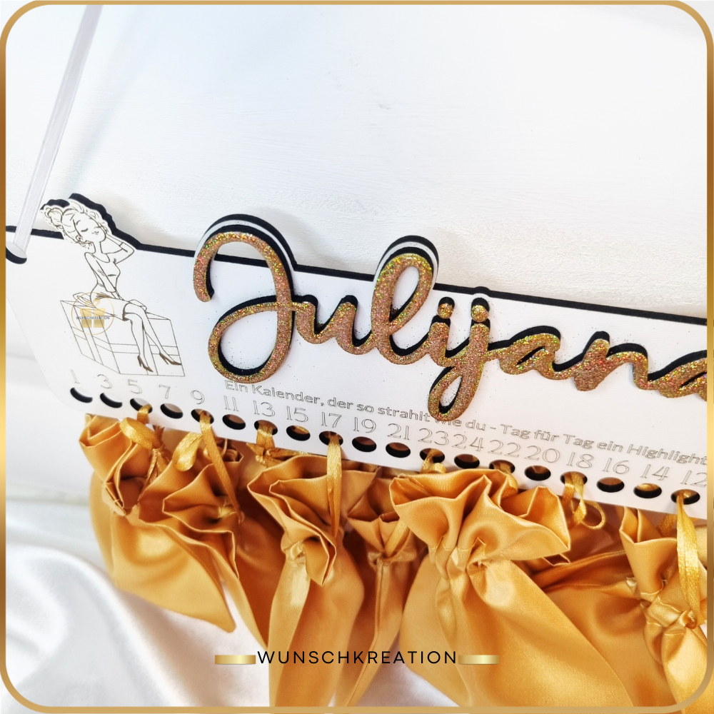 Personalisierter Adventskalender aus Holz – Handgefertigt mit Gravur & Glitzereffekt